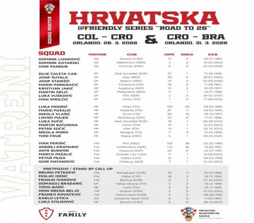 中場(chǎng):莫德里奇(米蘭)、帕薩利奇(亞特蘭大)、弗拉西奇(都靈)、馬耶爾(沃爾夫斯堡)、盧卡·蘇西奇(皇家社會(huì))、巴圖里納(科莫)、佩塔爾·蘇西奇(國(guó)米)、莫羅(博洛尼亞)、弗魯克(里耶卡)