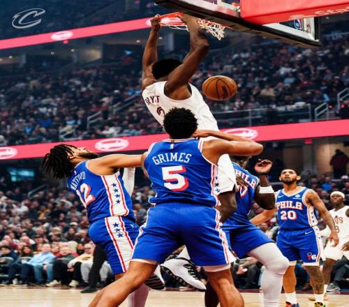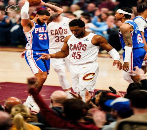馬丁搶斷后上籃得分,埃利斯2罰全中,梅里爾與巴洛在籃下斗法,米切爾強攻禁區得分。莫布里搶斷后完成暴扣,費城請求暫停。距離終場還剩3分50秒,騎士領先22分,兩隊都換上了板凳席末端的球員,比賽就此失去了懸念。雙方在場上練兵,時間逐漸走完。最終,騎士以115比101完勝76人,本賽季橫掃對手。