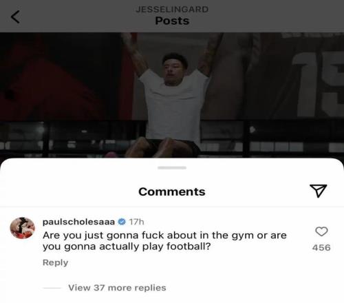 那個時候,很多曼聯人都怒其不爭,因為一點都看不出來林加德有多么著急,惹得斯科爾斯直接在他的動態下面留言: