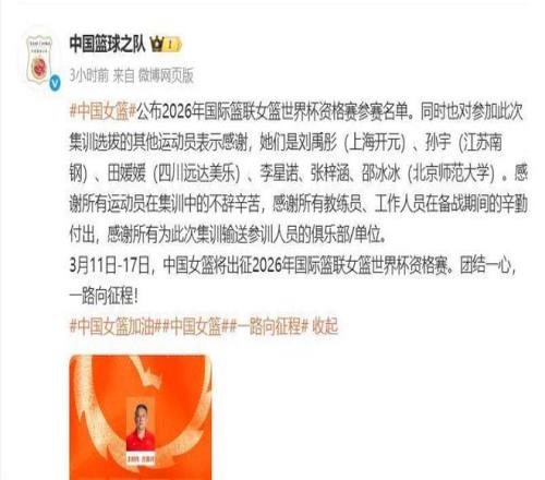 3月10日上午,中國女籃通過官方渠道公布了參加這次世預(yù)賽的12人大名單,劉禹彤等6人遺憾落選,女籃國家隊(duì)也向她們表示了感謝。在這12人大名單中只有韓旭、李月汝、王思雨和張茹等4人參加過上一屆的女籃亞洲杯,時(shí)隔四年中國女籃再出發(fā),目標(biāo)依舊是總冠軍。值得一提的是上一屆女籃國家隊(duì)的隊(duì)長是楊力維,新一屆女籃國家隊(duì)的隊(duì)長是楊舒予,她不僅是楊力維的妹妹,更是中國女籃的后場主力核心。