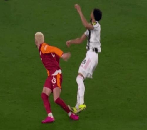 以尤文圖斯球員凱利在附加賽對陣加拉塔薩雷時的紅牌為例:他的動作最初被判第二張黃牌,后因腳底看似無意地踩在對手伊爾馬茲小腿后側,被升級為直接紅牌,禁賽兩場。歐足聯認定這是“嚴重的惡意接觸…… 明顯危及對方安全”。而就在一個月前,伯恩利后衛沃克在1月英超主場對陣曼聯的比賽中踩踏多爾古,主裁與VAR均未做出任何判罰。