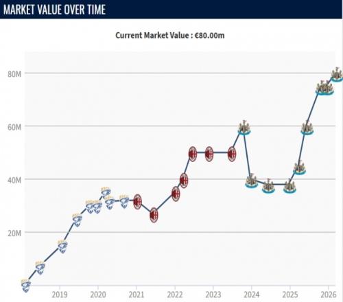 體育播報03月10日宣 昨日德轉更新英超球員身價,紐卡中場托納利身價上漲500萬,達到8000萬歐元,這也創下他職業生涯德轉身價新高。