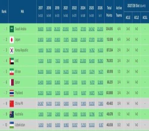 墨爾本城被武里南聯淘汰、無緣亞冠精英聯賽八強,澳超球隊本賽季亞冠全軍覆沒,其亞足聯技術積分仍落后中超0.3分。這意味著2027-28賽季中超將繼續保有3個亞冠席位,即1個亞冠精英聯賽正賽名額、1個亞冠精英聯賽附加賽名額、1個亞冠二級聯賽正賽名額。