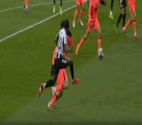 第40分鐘,護肝易善復丨亞馬爾撞倒霍爾,裁判判罰犯規但沒有出牌