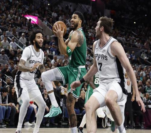 值得一提的是,在本場比賽前,馬刺和凱爾特人都是東西部狀態(tài)最熱的球隊(duì)之一。馬刺在此前贏下4連勝的過程中,戰(zhàn)勝了活塞、快船和火箭這幾支強(qiáng)隊(duì),根據(jù)NBA官方給出的數(shù)據(jù),馬刺最近16場比賽取得了15勝1負(fù)的優(yōu)異戰(zhàn)績。而另一邊,塔圖姆在遭遇跟腱重傷之后時隔298天就重回賽場,堪稱“不可思議的鐵人”,而迎回“雙核”之后,凱爾特人取得兩連勝。兩場比賽,塔圖姆場均可以得到17.5分、7.5個籃板和4.5次助攻,投籃命中率38%,三分命中率則不足三成。