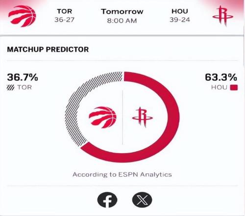 3月11日NBA常規(guī)賽——西部第4休斯頓火箭主場(chǎng)迎戰(zhàn)東部第5多倫多猛龍隊(duì)!上一場(chǎng)比賽火箭慘敗給馬刺隊(duì)暴露出了球隊(duì)攻防兩端存在的許多問(wèn)題,現(xiàn)在強(qiáng)隊(duì)打火箭只要夾擊杜蘭特就能有效限制火箭進(jìn)攻,最終贏球!猛龍隊(duì)的風(fēng)格與火箭很像,都是攻弱守強(qiáng)的球隊(duì),同時(shí)猛龍無(wú)論是三分命中率還是命中數(shù)都排在聯(lián)盟倒數(shù),因此這場(chǎng)比賽注定是一場(chǎng)防守大戰(zhàn)。此役火箭維持史密斯、杜蘭特、申京、伊森、阿門(mén)的先發(fā)陣容,猛龍這邊則讓馬穆上到先發(fā)搭檔英格拉姆、巴恩斯、巴雷特、奎克利。最近幾場(chǎng)比賽杜蘭特盡顯疲態(tài),其他球員需要在進(jìn)攻端給予幫助,申京面對(duì)馬穆沒(méi)有任何理由打不出優(yōu)勢(shì),此外阿門(mén)、史密斯、伊森都需要發(fā)揮沖擊力以及拼搶籃板球的優(yōu)勢(shì),賽前預(yù)測(cè)火箭勝率63.3%優(yōu)勢(shì)明顯,話不多說(shuō)讓我們帶著這些看點(diǎn)一起進(jìn)入這場(chǎng)焦點(diǎn)對(duì)決。