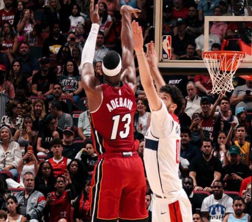 北京時間3月11日,NBA常規賽繼續進行,熱火主場對陣奇才。此前奇才戰績為16勝47負,最近一波8連敗,暫列東部第14位;而熱火此前戰績36勝29負,最近迎來一波5連勝,已經慢慢爬升到東部第七。打魚腩擺爛隊奇才,原本本場比賽沒有任何懸念,熱火這邊包括維金斯、約維奇、鮑威爾、希羅、韋爾等首發或者核心都不打,就只讓阿德巴約帶隊二三陣容混合編,當然,比賽結果沒有任何意外,熱火拿到一場意料之中的勝利,但關鍵是阿德巴約爆發了,讓自己載入史冊!