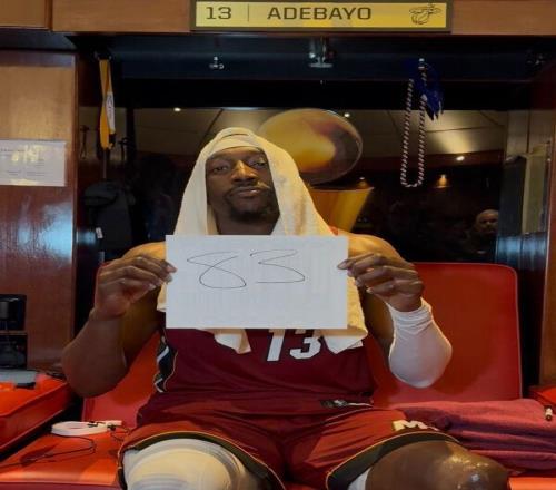 本場比賽,熱火中鋒巴姆-阿德巴約出戰42分鐘,投籃43中20,三分22中7,罰球43中36,得到83分9籃板3助攻2搶斷。
