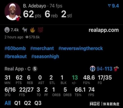 那最后的5分多鐘,比賽的氛圍已完全變了樣,不再是垃圾時間的閑庭信步,而是阿德巴約與奇才隊之間的一場個人榮譽與團隊尊嚴的較量。奇才隊的防守密不透風,真正的包夾戰術讓阿德巴約每一步都舉步維艱。而熱火隊則巧妙運用犯規戰術,試圖為阿德巴約爭取更多的進攻機會。畢竟,當比賽還剩1分40秒,熱火還落后2分,而阿德巴約距離81分僅差2分時,每一秒都顯得尤為珍貴。