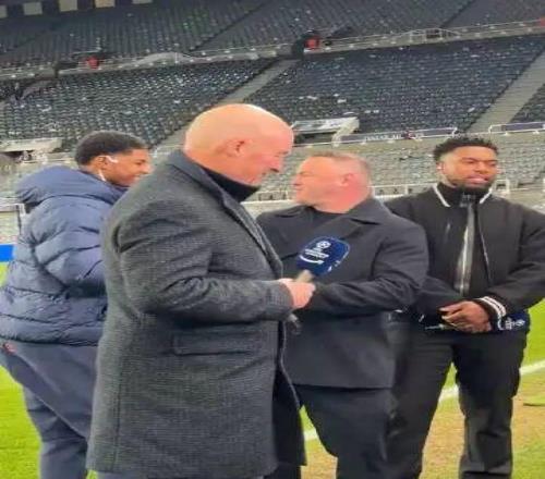 隨巴薩來到圣詹姆斯公園球場客戰紐卡斯爾的拉什福德在賽前上前和魯尼打招呼