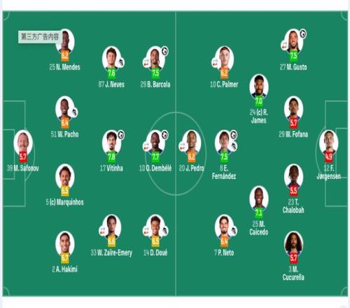 巴黎圣日耳曼首發(fā):39-薩福諾夫、2-阿什拉夫、5-馬爾基尼奧斯、25-努諾·門(mén)德斯、51-帕喬、17-維蒂尼亞、33-扎伊爾·埃梅里(78’21-盧卡斯·埃爾南德斯)、87-內(nèi)維斯、10-登貝萊(69’19-李剛?cè)剩?4-杜埃(62’7-克瓦拉茨赫利亞)、29-巴爾科拉(78’24-馬尤盧)。