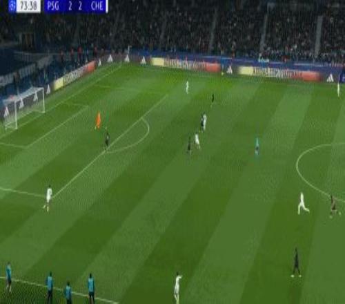 第74分鐘表現不佳的切爾西門將約根森,出球失誤直接被搶斷,維蒂尼亞隨后用一記吊射,再次攻破了藍軍的球門,大巴黎在主場重新取得了3-2的領先,雖然若昂佩德羅隨后扳平比分,但越位在先進球被主裁判取消,比賽最后時刻,替補登場的克瓦拉茨赫利亞左路梅開二度,將比分定格為了5-2。