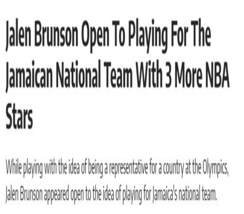 因此,盡管目前國籍問題可能讓布倫森暫時無法代表牙買加,但這位尼克斯巨星最終是否會做出這一決定,依然值得期待。