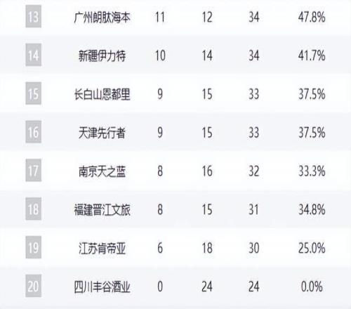 寧波12勝11負、北控11勝13負、廣州11勝12負,季后賽邊緣廝殺慘烈。