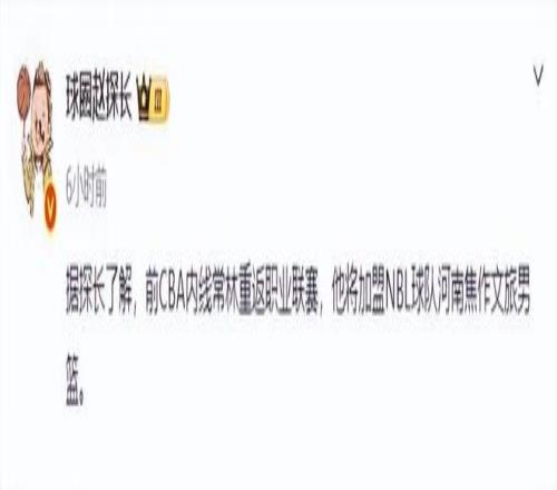 CBA聯賽已經在前幾天確定了27-28賽季恢復升降級的具體方案,不少NBL球隊都開始對陣容進行補強。在合肥狂風簽下了廣東男籃舊將王薪凱后,河南焦作文旅也簽下了北京男籃舊將常林,媒體人“球圈趙探長”在社交媒體上透露了這個消息。
