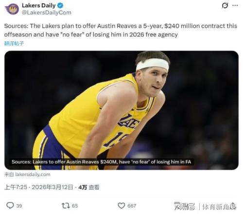 此外,Ashish Mathur還透露了一個重大消息。一旦小里的合同塵埃落定,湖期將會積極運作,試圖招募“坤坤”加盟。湖人手中最大的籌碼,便是擁有三枚可用于交易的首輪簽,分別是2026年、2031年和2033年的首輪簽。