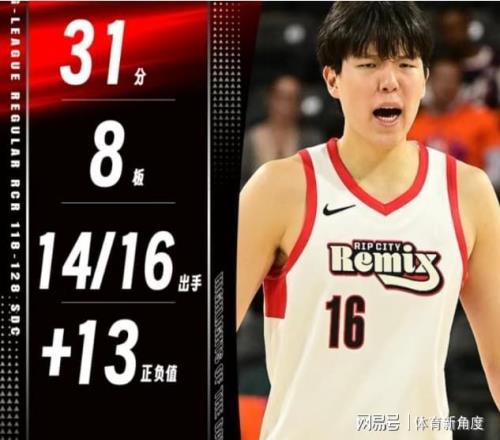 他的投籃手感熱得發燙,16次出手竟有14次穩,其中三分線外也是一擊即中,1投1中,就連罰球也是1罰1中,毫無懸念地轟下了自己G聯盟生涯以來的最高分——31分。除此之外,他還貢獻了8個籃板、3次助攻、1次搶斷以及1記精彩絕倫的蓋帽,正負值高達+13,傲視全隊!