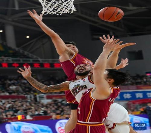 3月11日,吉林長白山恩都里隊球員摩爾(右二)在比賽中。新華社記者 楊晨光 攝