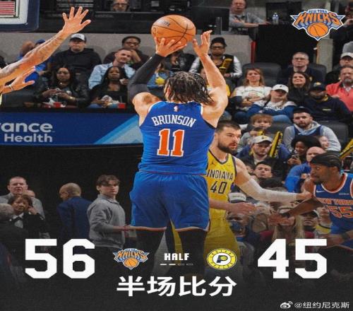 次節(jié)比賽,尼克斯進(jìn)攻火力升級(jí)本場(chǎng)首次單節(jié)得分30+,步行者連續(xù)兩節(jié)單節(jié)不足25分。尼克斯率先擴(kuò)大34-26領(lǐng)先優(yōu)勢(shì),步行者一波9-0攻勢(shì)反超,布倫森攻傳結(jié)合引領(lǐng)一波11-2攻勢(shì)反超8分。步行者連追5分,尼克斯繼續(xù)擴(kuò)大兩位數(shù)領(lǐng)先優(yōu)勢(shì),尼克斯單節(jié)32-24凈勝8分,上半場(chǎng)結(jié)束尼克斯56-45領(lǐng)先步行者。前兩節(jié)比賽,尼克斯三分13中4,布倫森17中9得到23分與阿奴諾比12+4+4;步行者三分17中4,全隊(duì)沒(méi)有球員得分上雙,祖巴茨9+4。
