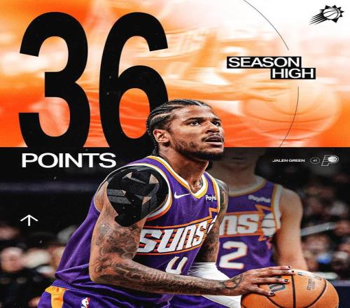 全場出戰34分鐘,投籃23中14,三分9中3,罰球7中5,得到36分3籃板4助攻4搶斷,36分刷新太陽生涯最高,同時正負值達到了+16。