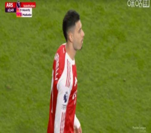第61分鐘,阿森納連換兩人,馬丁內(nèi)利、哲凱賴什替補(bǔ)登場(chǎng)