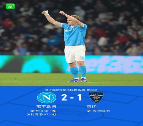 北京時間3月15日意大利足球頂級聯賽第29輪,那不勒斯主場迎來萊切的挑戰。比賽中,萊切球員通過配合由西伯特率先取得進球;隨后那不勒斯球員波利塔諾助攻霍伊倫扳平比分;之后波利塔諾又打入一球完成反超。最終,那不勒斯以2-1的比分擊敗萊切。