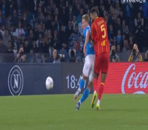 第46分鐘,扳平比分,波利塔諾助攻,霍伊倫搶點破門,那不勒斯1-1萊切