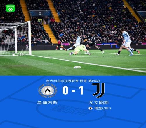 第38分鐘,伊爾迪茲助攻,博加首開記錄,烏迪內斯0-1尤文