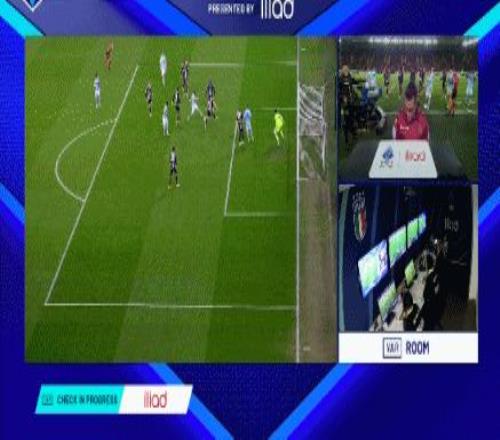 第9分鐘,洛卡特利放倒阿里薩拉,裁判吹罰犯規