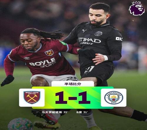 第32分鐘曼城在中前場連續(xù)傳遞,馬爾穆什送出直塞球,B席在小角度的情況下起腳挑射破門,曼城隊1-0取得領(lǐng)先。第35分鐘西漢姆聯(lián)隊角球開到禁區(qū)內(nèi),馬夫羅帕諾斯頭球攻門,皮球打在橫梁下沿彈入球門,西漢姆聯(lián)隊1-1追平比分。