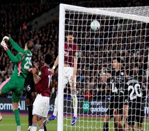 但僅僅過了4分鐘西漢姆聯隊就扳平了比分,右側角球開出后,多納魯馬沒有碰到皮球,后點的馬夫羅帕諾斯高高躍起頭球建功,幫助鐵錘幫將比分追至1平,半場結束前,曼城前場搶斷后迅速形成了反擊,哈蘭德禁區內倒三角回做,但塞梅尼奧的射門擦著立柱出了底線。