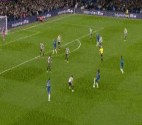 第16分鐘,恩佐弧頂爆射,隊友帕爾默站位不佳將球擋出。