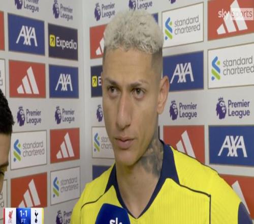 英超第30輪,熱刺客場1-1戰平利物浦,此役打入扳平比分進球的熱刺前鋒里沙利松賽后接受了天空體育的采訪。