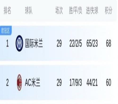 本輪國米1-1戰平亞特蘭大,米蘭0-1不敵拉齊奧。賽前意媒渲染的“如果米蘭贏球,爭冠懸念將重啟”的劇本,最終以國米領先優勢反而擴大收場的。