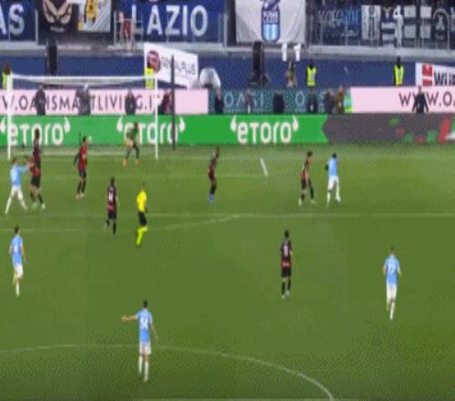 第26分鐘,伊薩克森禁區(qū)右路低射破門,拉齊奧1-0米蘭
