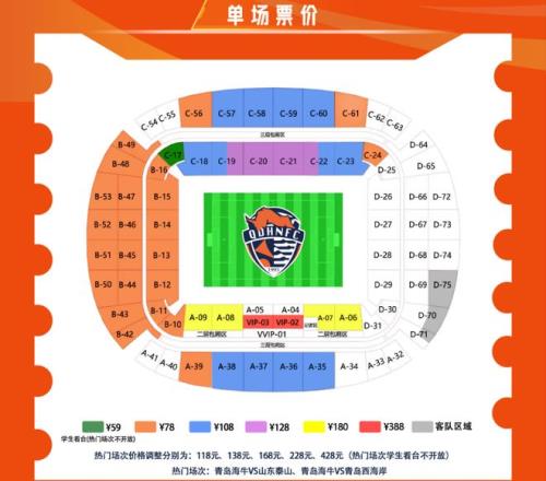 經過連續2輪客場征戰之后,青島海牛將迎來新賽季首個主場比賽。在負分開局,而且前2輪未能拿到分數的背景下,主場首秀的重要程度不言而喻。根據公告,這場比賽的球票在3月16日19:00開票。球票分為6個檔次,票價分別為:59(學生看臺)、78、108、128、180、388。相比較上賽季,票價區間進行了細分,整體票價也有所下調,可進一步惠及球迷。在中超所有專業足球場中,這也是最便宜的球票了。球迷可以通過“海牛GO”“看個比賽”“青潮文體”等途徑購買。