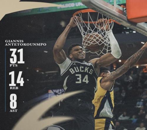 今日雄鹿134-123擊敗步行者,結束了四連敗,拿到最近十場比賽的第二勝。