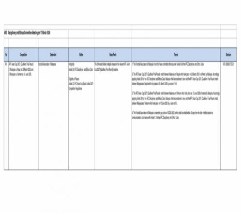 1-馬來西亞足協(xié)被認(rèn)定違反了亞足聯(lián)紀(jì)律與道德準(zhǔn)則第56條。