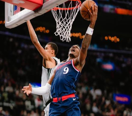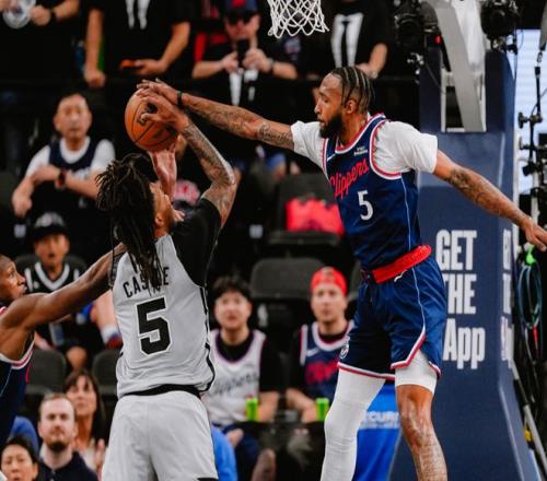 瓦塞爾起飛暴扣止血后,福克斯單打,卡斯爾搶斷飛扣,馬刺追分很快。關鍵時刻加蘭連中兩記三分,馬瑟琳上場后帶領替補沖擊籃下,不過馬刺依靠巴恩斯和福克斯屢屢給出回應,雙方陷入拉鋸戰,第一節快船37-29馬刺。進入第二節,卡斯爾補籃打成2+1,此后文班亞馬上空籃,麥克勞林轟三分,馬刺追平了!快船進攻停滯,卡斯爾繼續肆虐籃下!直到中段,馬瑟琳和科林斯才幫快船止血。但很快文班亞馬三分開張,約翰遜連續強攻籃下得手,瓦塞爾續上底角三分,馬刺拉開10分分差。