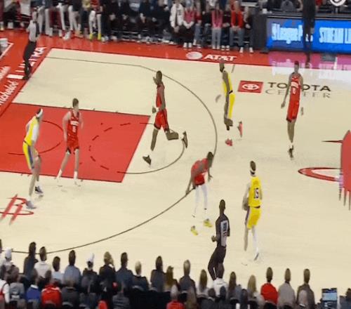 湖人隊堅決對杜蘭特實行強硬的包夾防守,而賈巴里史密斯、卡佩拉等角色球員狀態出色。反觀湖人隊,東契奇手感爆棚,里突外投不到半節比賽得分就已經上雙了。雙方你來我往,比分呈現膠著的態勢。謝潑德高難度三分外加飛身暴扣,首節比賽結束,火箭暫時落后1分。