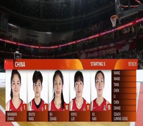 中國女籃首發:張曼曼、楊舒予、張茹、羅欣棫、韓旭。