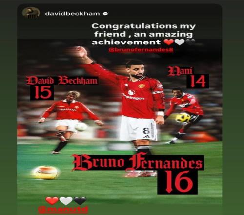 在曼聯3-1擊敗阿斯頓維拉的比賽中,布魯諾-費爾南德斯貢獻2次助攻,以本賽季16次英超助攻打破貝克漢姆保持26年的曼聯隊史單賽季助攻紀錄。