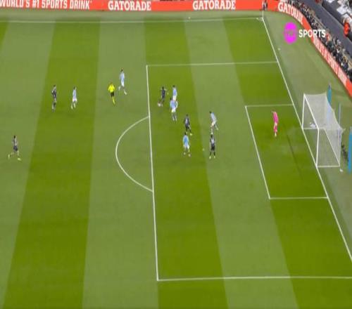 這位巴西前鋒加速沖向球門,將盯防他的胡桑諾夫擠進了自家禁區,隨后在禁區邊緣起腳射門,皮球擊中遠門柱彈回,打在多納魯馬背上,險些滾進曼城球門。