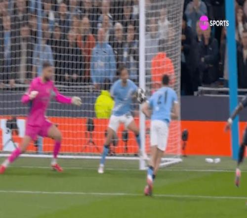 當曼城重新開球時,比賽時間已經超過了22分鐘。幾秒后,曼城前鋒哈蘭德就迫使庫爾圖瓦做出了一次精彩撲救,將總比分保持在4比0。