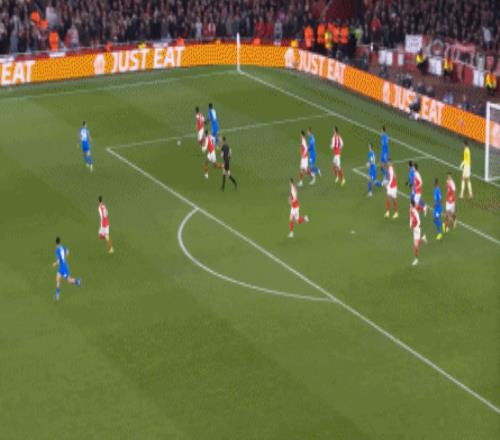 邊鋒都回來了,還怎么壓制對手的后衛線,從而制造兩線之間的空間?但阿森納就需要這樣,而且邊鋒回來也不見得就能打出來,最后還是需要長傳找哲凱賴什: