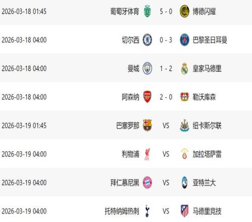 北京時間3月18日,歐冠16強淘汰賽第二回合進行了4場比賽,結果阿森納、大巴黎、皇馬和葡萄牙體育分別戰勝各自的對手,順利晉級8強。