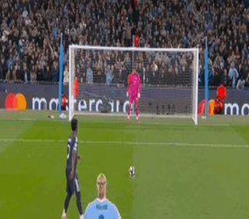 第49分鐘,多庫左路突破傳中,哈蘭德點(diǎn)球點(diǎn)掃射被盧寧神勇化解。