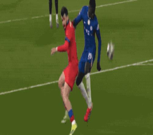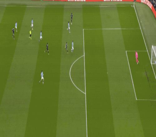 顯示維尼修斯高速插上的射門擊中立柱彈出,接下來,維尼修斯的射門被B席擋出。比賽進行了將近5分鐘,蒂爾潘吹停,VAR介入,維尼修斯并不越位,B席門線上手球犯規,被紅牌罰下,這才有了維尼修斯的點球。