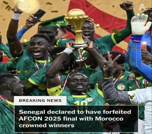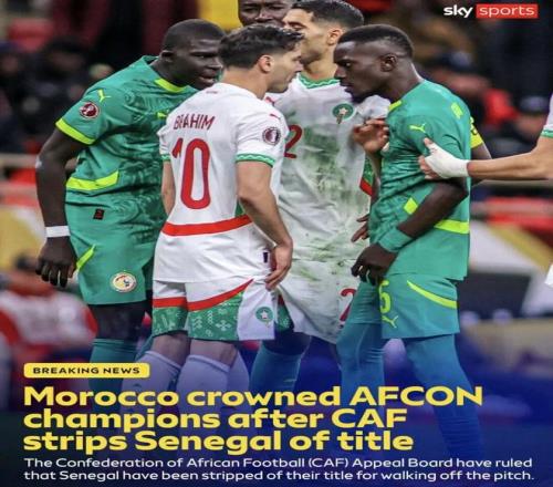 非洲足聯(lián)官方發(fā)布聲明,塞內(nèi)加爾國家隊被判在非洲杯決賽中棄權,本場決賽按0-3摩洛哥獲勝。