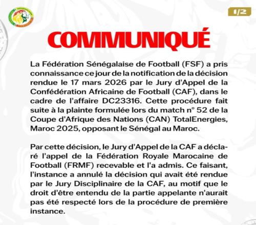 在被判0-3,摩洛哥之后,塞內(nèi)加爾足協(xié)官方發(fā)布公告回應,他們的態(tài)度也是非常強硬,將會在最短時間內(nèi)向位于洛桑的體育仲裁法庭(CAS)提起上訴。